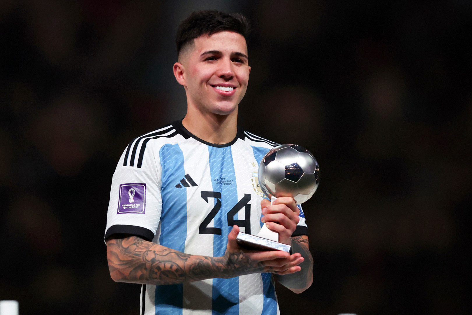 3. Kỳ World Cup ngoạn mục của Enzo kết thúc với tư cách là nhà vô địch thế giới. Trên bục vinh quang, anh cũng được FIFA trao giải thưởng dành cho cầu thủ trẻ xuất sắc nhất giải đấu.