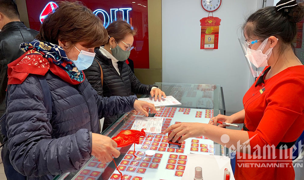 Nhiều năm nay, cứ vào dịp vía Thần Tài là người dân khắp nơi đổ đi mua vàng cầu may mắn, tài lộc, mong cuộc sống sung túc đủ đầy. Phần lớn mọi người chỉ mua một lượng vàng rất nhỏ, từ 0,05 chỉ đến nửa chỉ, 1 chỉ vàng. Song, cũng có người mua tới vài lượng vàng, thậm chí, có người còn vác cả bao tải tiền đi mua vàng ngày vía Thần Tài.