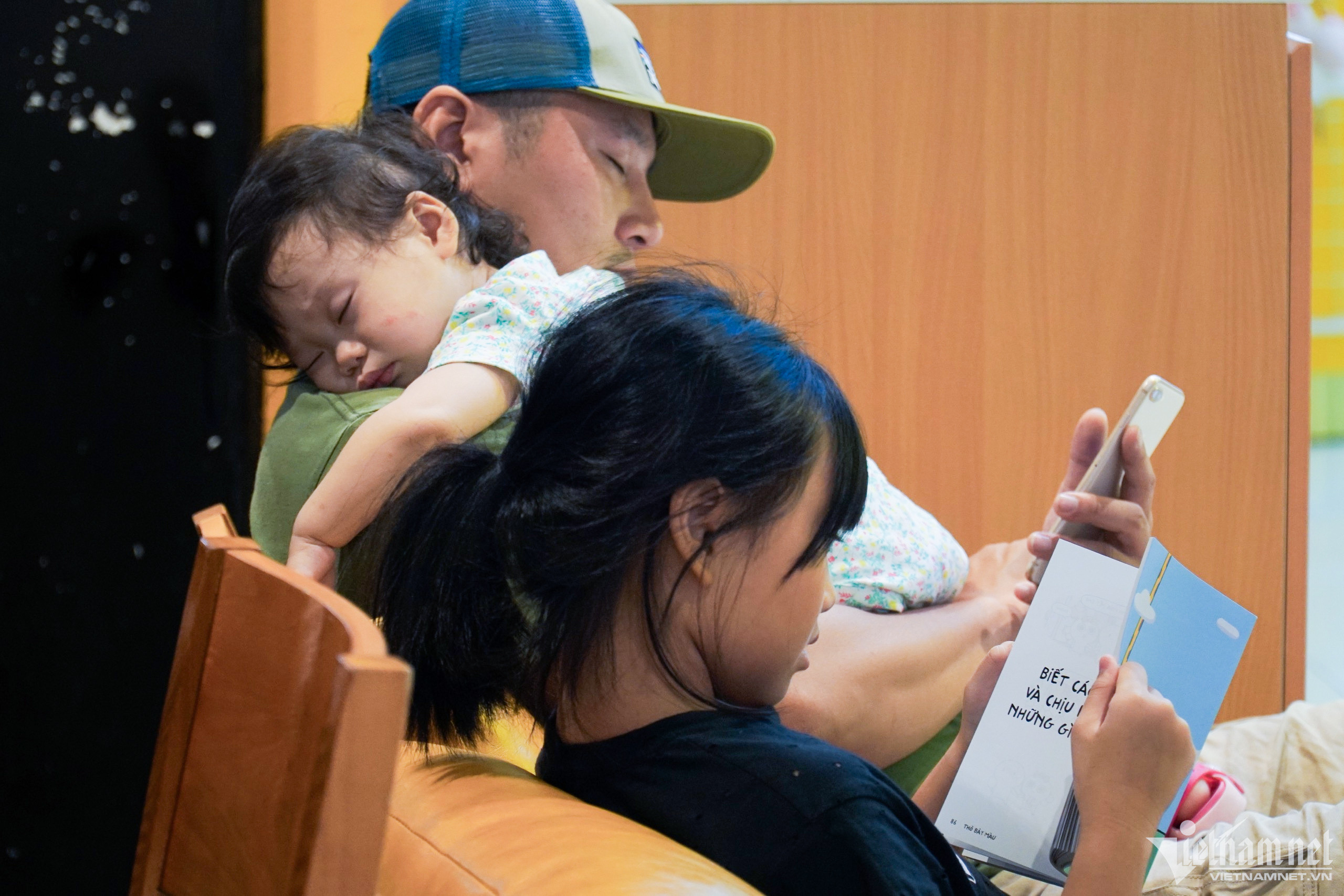 Chơi xuyên sáng qua trưa, nhiều trẻ nhỏ lẫn người lớn đều tỏ ra mệt mỏi và ngủ gục.