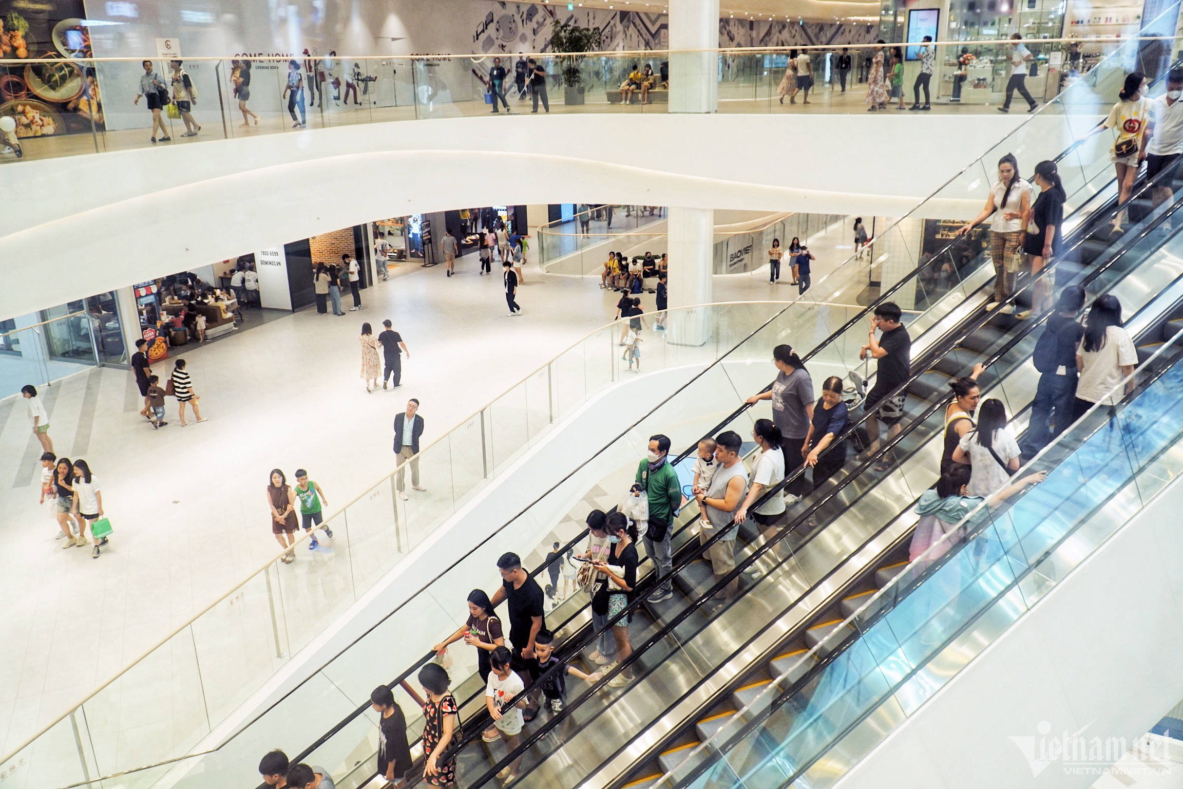 Tại một trung tâm thương mại khác ở quận Tây Hồ, lượng người ra vào khá đông nhưng có phần thưa hơn so với ở các địa điểm khác.