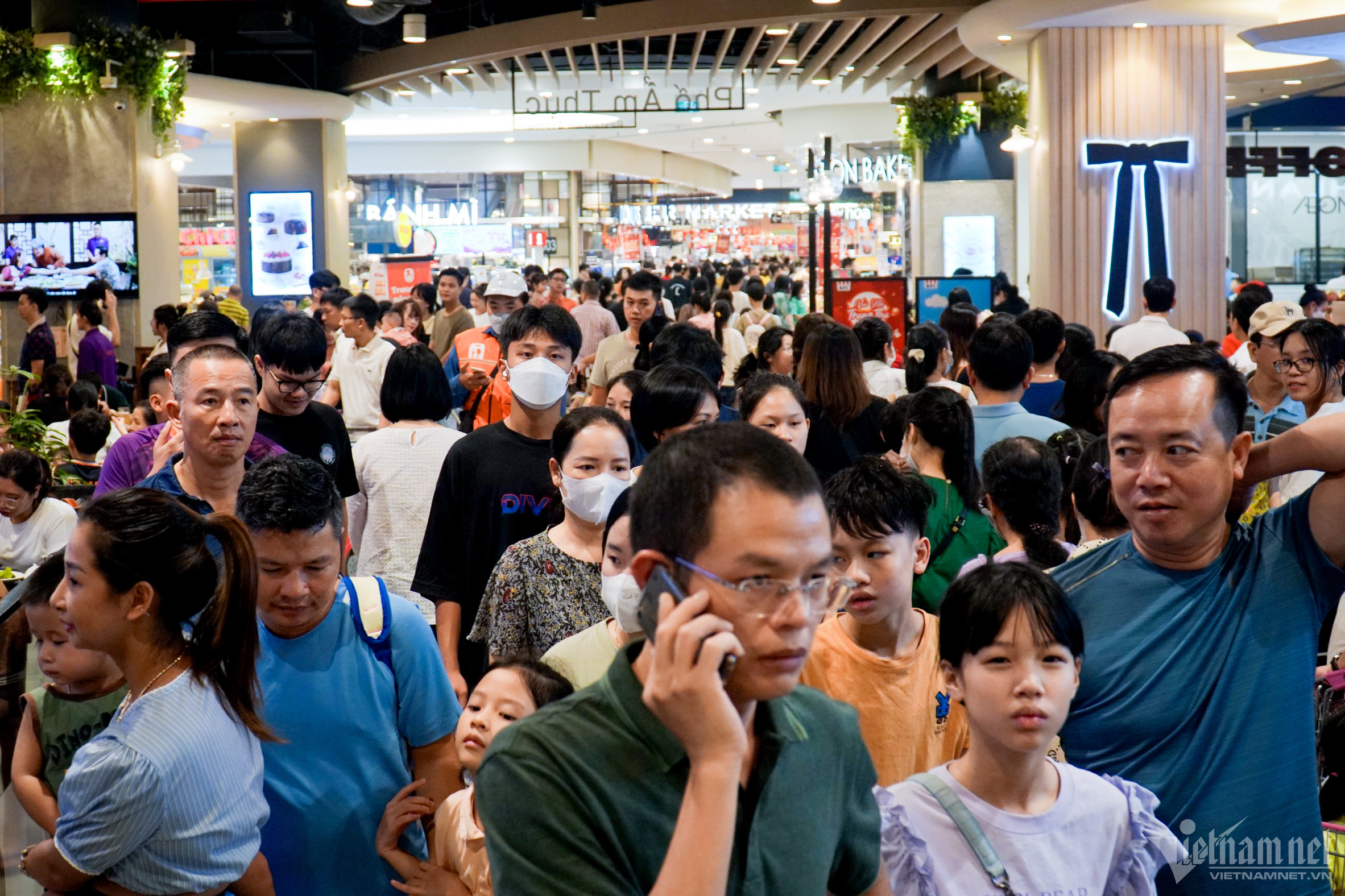 Trưa 1/9, ngày đầu tiên kỳ nghỉ Quốc khánh, nhiều trung tâm thương mại tại Hà Nội liên tục đón những lượng khách rất đông đúc.