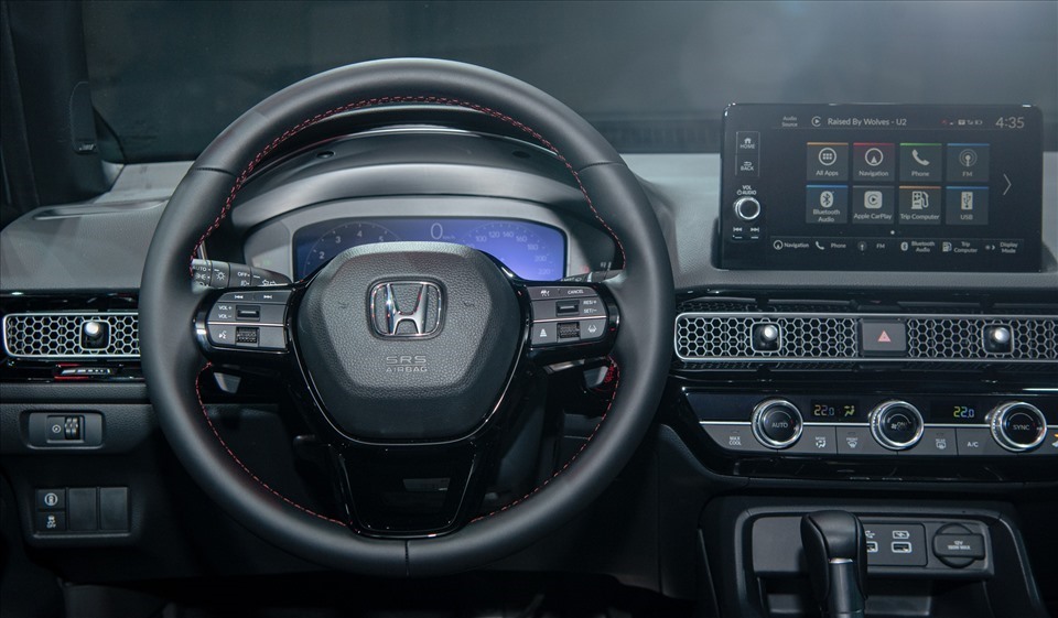 Tiếp nối ngoại thất, khoang lái Civic tối giản, tập trung vào người lái. Cụm đồng hồ điện tử 10,2 inch mới, tùy chọn hiển thị. Vô-lăng bọc da, tích hợp nhiều phím điều khiển và lẫy chuyển số. Màn hình cảm ứng 9 inch độ phân giải cao cho hệ thống thông tin giải trí, hỗ trợ kết nối Apple CarPlay không dây.