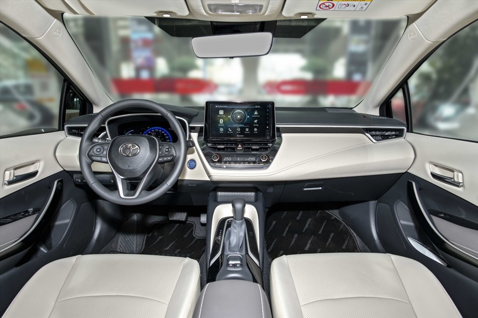 Bước vào khoang lái, phiên bản 1.8 Hybrid mới, mẫu xe được trang bị thêm hàng loạt công nghệ hiện đại, tiện nghi như màn hình hiển thị thông tin trên kính lái HUD, màn hình cảm ứng 9-inch dạng nổi kết nối không dây với điện thoại thông minh, màn hình hiển thị đa thông tin 7 inch, hệ thống điều hòa tự động 2 vùng độc lập với cửa gió trước và sau,…