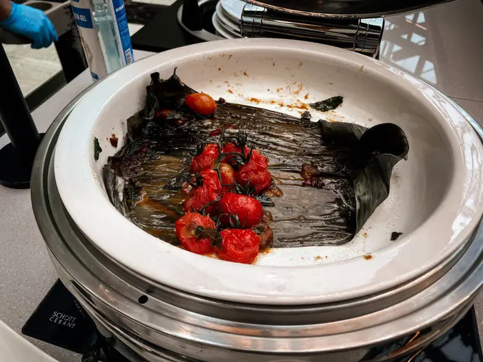 Nhà hàng Clove chủ yếu phục vụ các món ăn châu Á. Descalsota cứ nghĩ sẽ phải chọn lọc trong số đồ dư, nhưng ngạc nhiên khi thấy nhiều khay đồ vẫn còn đầy thức ăn. Với giá 10,5 SGD, bạn được sử dụng một hộp đựng đồ và có thể lấy bao nhiêu tùy thích. Nếu muốn thêm thức ăn ở quầy đồ tươi, bạn sẽ phải trả thêm phí 5 SGD. Descalsota cho biết cô thấy điều này không cần thiết, vì lượng đồ ăn ở quầy buffet còn rất nhiều và đa dạng.