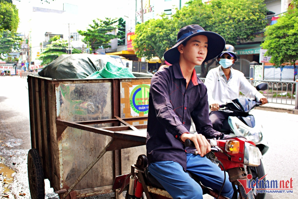 “Tôi cứ xé các túi rác rồi đổ, trút rác từ trong thùng vào chung một xe. Có khi, tôi cũng không xé túi rác, cứ chất lên xe, dùng chân nén chúng xuống để thùng xe chứa được nhiều hơn”, Tuấn nói.