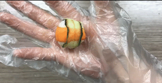 Chỉ sau vài giây, cô nàng đã biến cơm trắng, carot, dưa chuột thành những miếng sushi đầy màu sắc