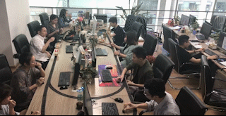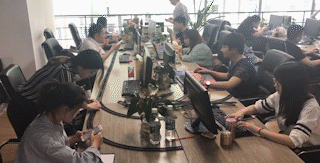 Các đồng nghiệp của Tiểu Dã chỉ việc ngồi tại chỗ làm việc và thưởng thức sushi