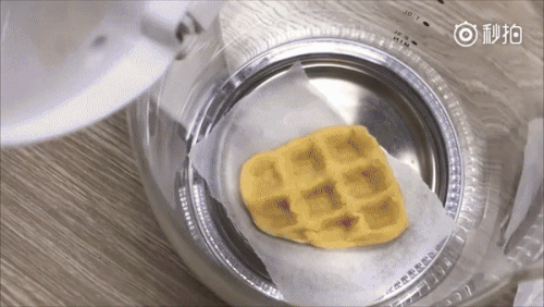 Những món bánh nhẹ thường ngày cùng với một bình trà hoa cúc không thể làm khó chị đại. Việc cho bánh vào bình thủy tinh kín rồi dùng máy sấy tóc nướng chín khẳng định sự sáng tạo vô bờ bến của chị đại.