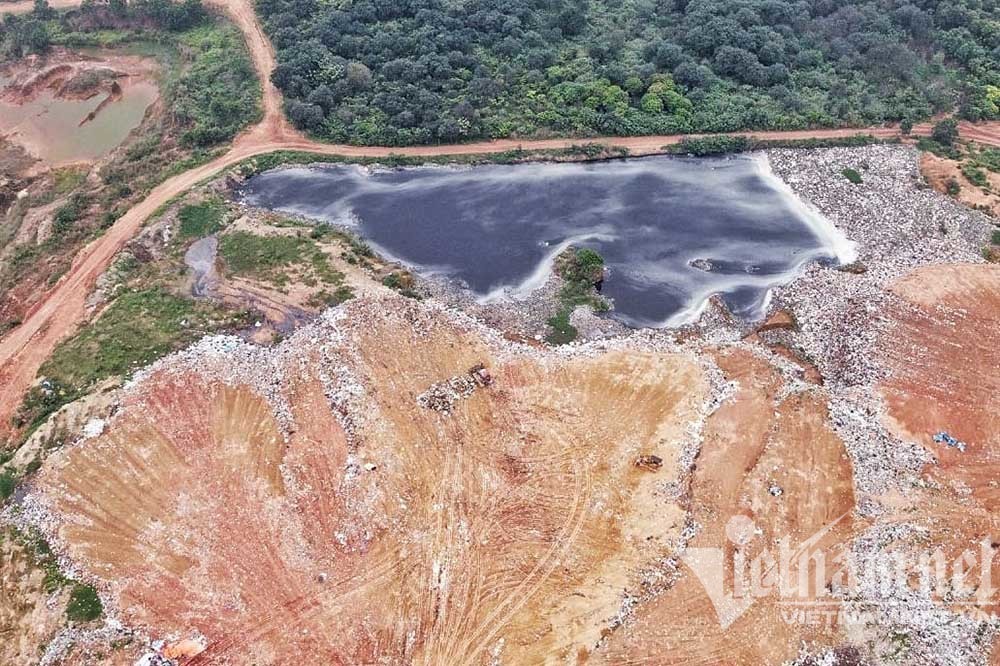 | Bãi rác chôn tạm tại núi Bông, TP Vĩnh Yên xuất hiện vũng nước đen kịt. Ảnh: Đoàn Bổng |