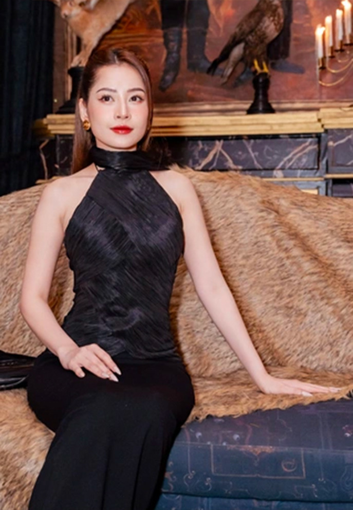 Nữ diễn viên thu hút truyền thông khi xuất hiện ở sự kiện. Cô diện váy đen cắt xẻ, khoe vai trần và vóc dáng thon thả.