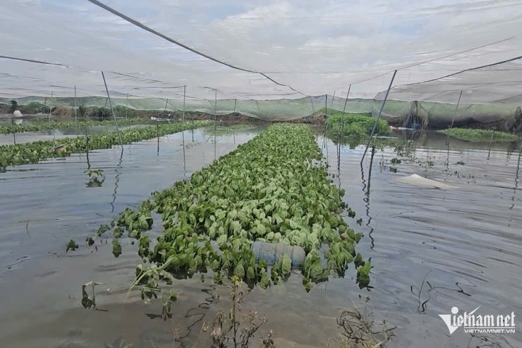 Tương tự, ông Nguyễn Văn Nam (42 tuổi) cũng chịu cảnh trắng tay khi 4.000m2 rau của ông bị ngập hoàn toàn.
