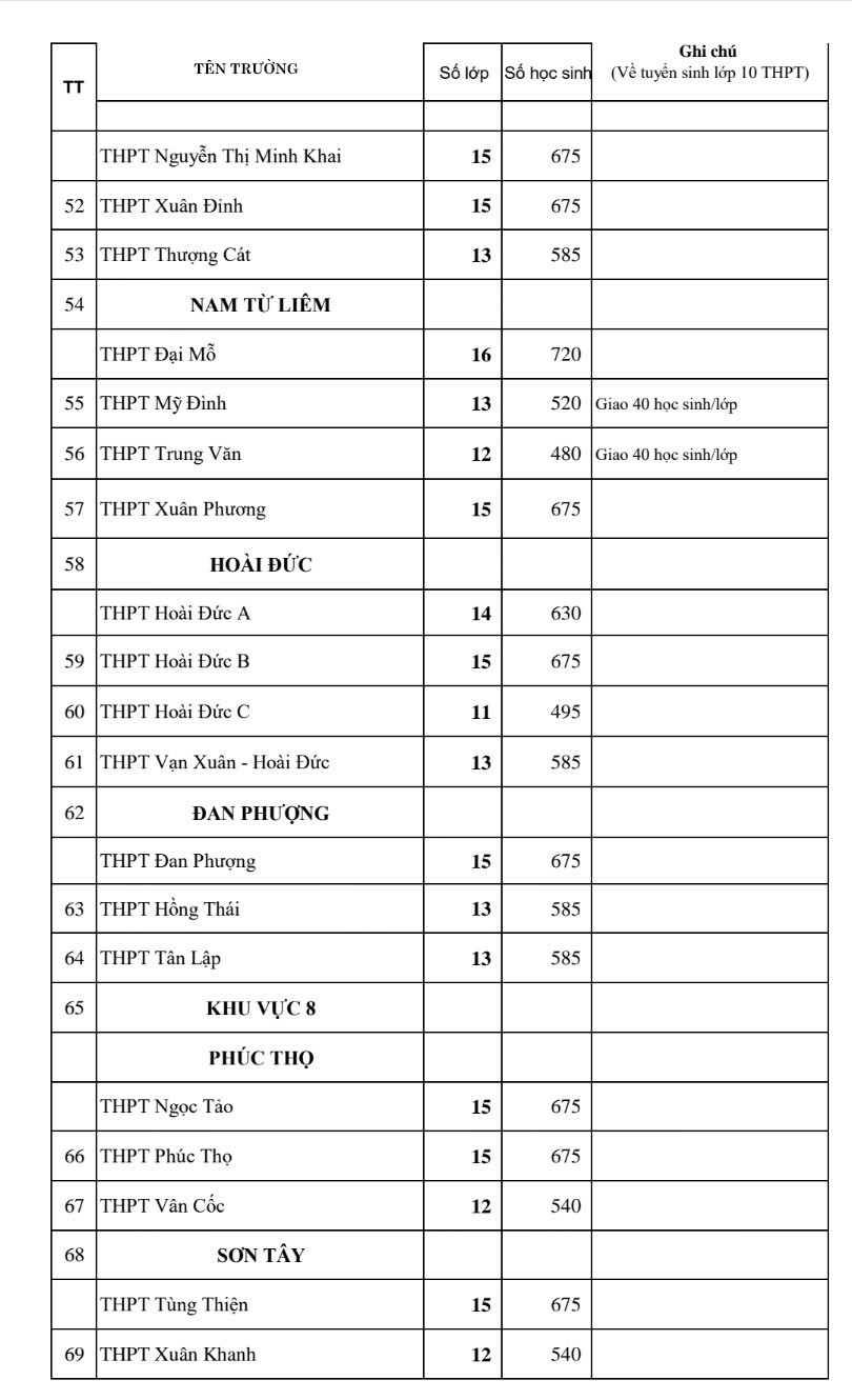 Chỉ tiêu tuyển sinh vào lớp 10 các trường THPT công lập, trường công lập tự chủ, trường chuyên, trường tư thục, trung tâm giáo dục nghề nghiệp - giáo dục thường xuyên và các cơ sở giáo dục nghề nghiệp có tuyển sinh học sinh tốt nghiệp THCS năm 2022 của Hà Nội cụ thể như sau: