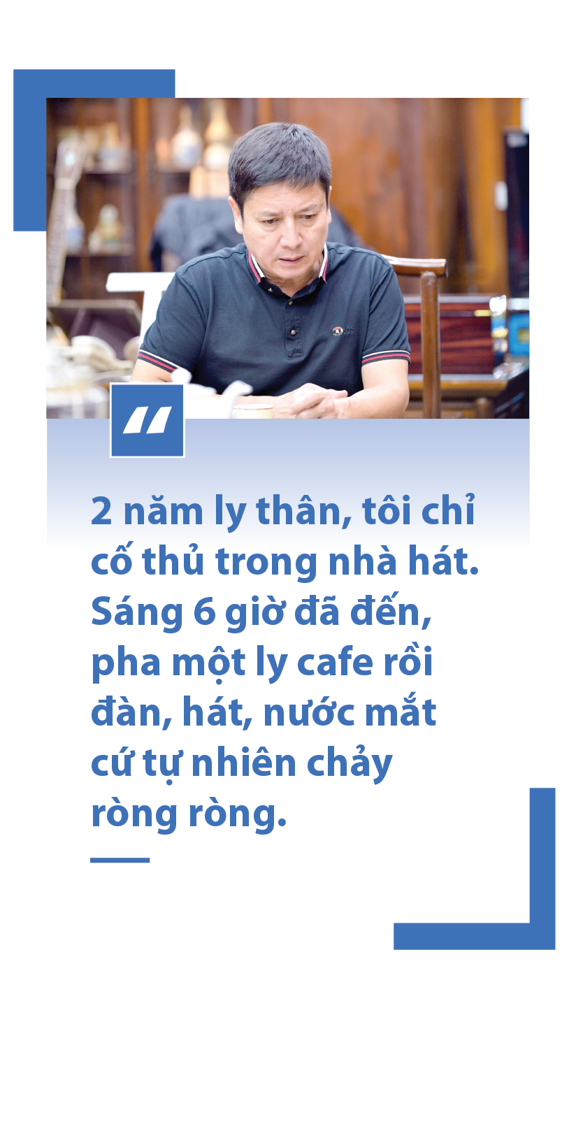 - 2 năm ly thân, tôi chỉ cố thủ trong nhà hát. Sáng 6 giờ đã đến, pha một ly cafe rồi đàn, hát, nước mắt cứ tự nhiên chảy ròng ròng. Đêm thì 11-12 giờ mới đứng dậy về nhà. Không phải bận mà lúc đó tôi rất sợ về nhà vì tôi chỉ còn một mình. Làm gì cũng không khỏi nghĩ về những ngày tháng đầy đủ đã qua.