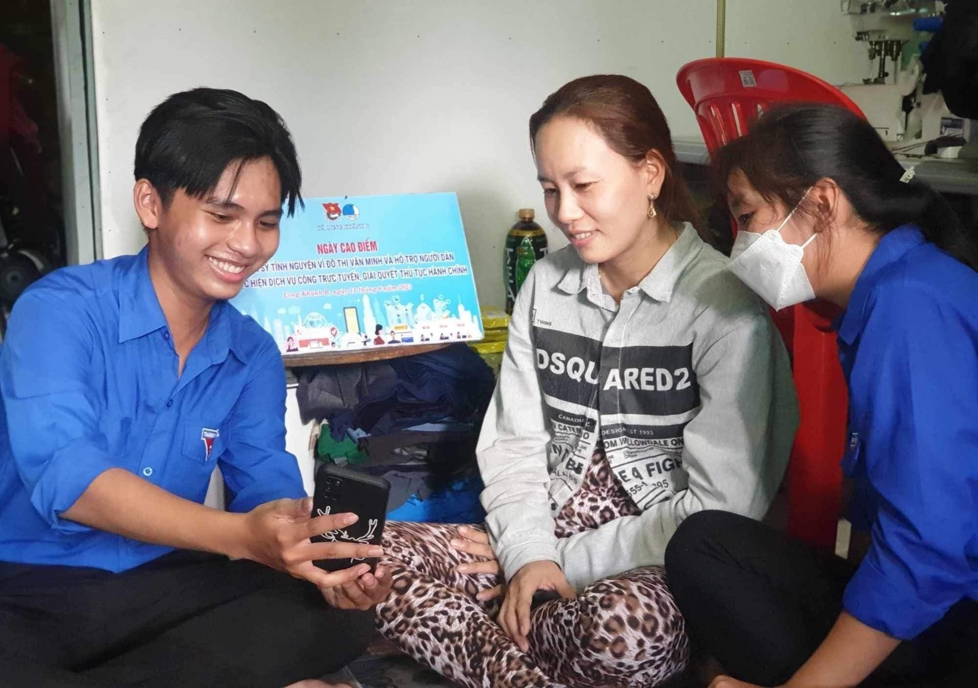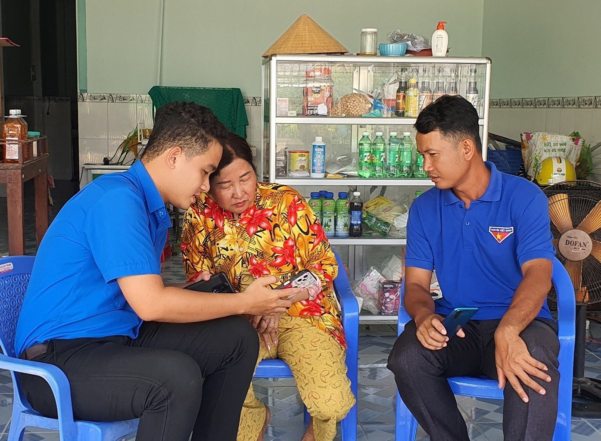 Bà Loan loay hoay không biết nên bắt đầu từ đâu để kích hoạt tài khoản định danh điện tử. Tuy nhiên, những lo lắng, khó khăn của bà Loan được đoàn viên, thanh niên tại địa phương tới tận nhà hỗ trợ bà cùng các thành viên trong gia đình.