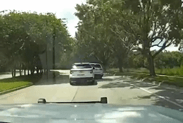 Theo camera giám sát tại hiện trường ghi lại, chiếc Lexus màu đen đang đi trên đường thì bất ngờ lòng đường sập xuống một hố sâu, chiếc xe phóng qua miệng hố bay lên cao rồi tiếp đất rất mạnh bằng mũi xe.