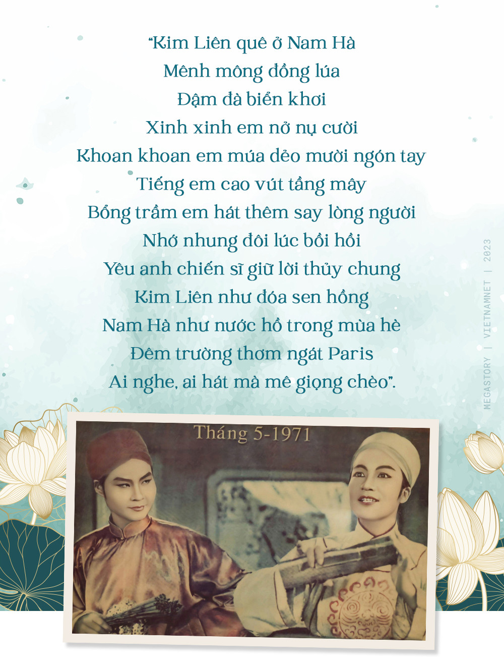 Trước khi nghệ sĩ Kim Liên về nước, vì trân trọng tài năng, Bộ trưởng Xuân Thủy đã tặng bà bài thơ “Đóa sen hồng”: