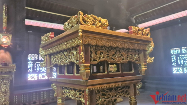 Đáng chú ý, bên trong chính điện, các đồ thờ, vật dụng được phục dựng và sơn son thếp vàng với giá trị hơn 40 tỉ đồng.
