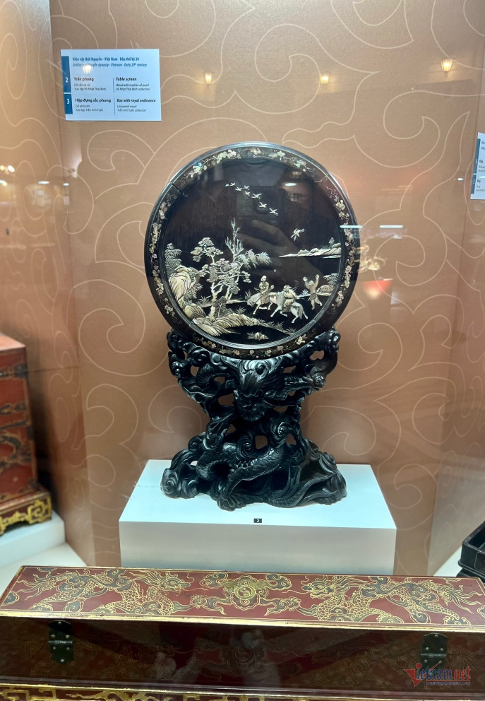 Trong đó, hiện vật thời Nguyễn phong phú như: nghiên mực, khay, hộp đựng sắc phong, trấn phong, lư trầm, con dấu... với chất liệu đá, gỗ, ngà, đồng. Đồ thờ cúng hay lư hương được trang trí hoa văn tỉ mỉ, không chỉ mang ý nghĩa tín ngưỡng, văn hóa mà cả ý nghĩa lịch sử.