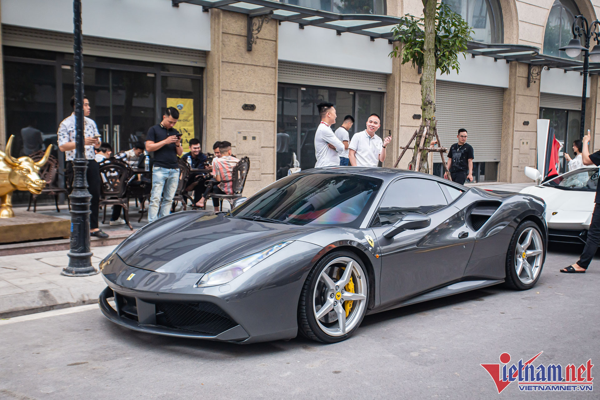 Dẫn đầu đoàn xe là chiếc Ferrari 488 GTB có ngoại thất màu đỏ. Theo tìm hiểu của VietNamNet, siêu xe này từng thuộc sở hữu của một đại gia Sài Gòn bị khởi tố về hành vi chống người thi hành công vụ.