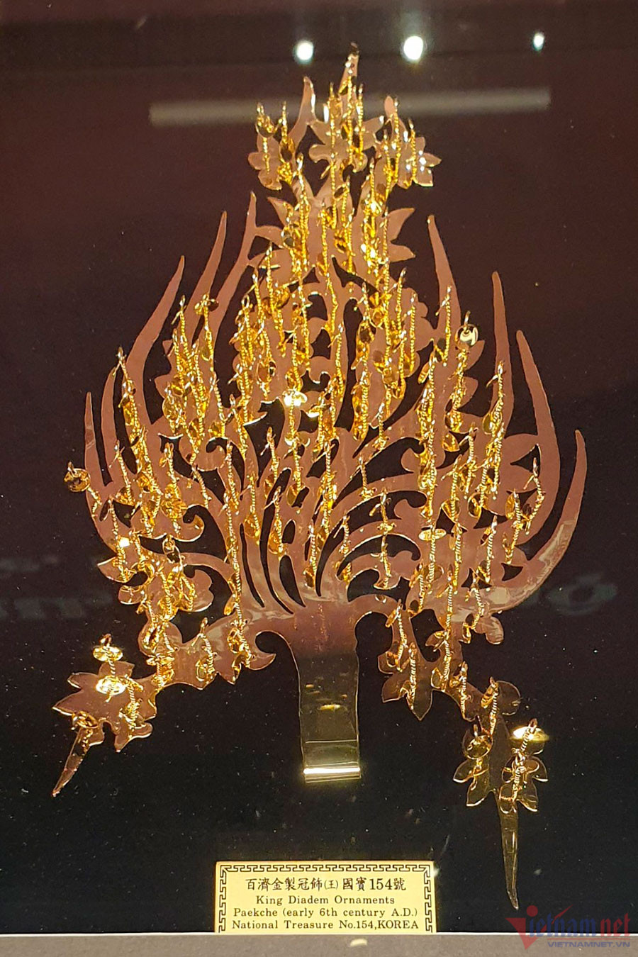 Điểm nhấn của triển lãm là 3 hiện vật (phục chế từ hiện vật gốc): Chi tiết trang trí bằng vàng trên vương miện của vua Muryeong được tìm thấy trong quan tài của vua khi ngôi mộ được khai quật vào năm 1971; lư hương đồng mạ vàng Baekje tại di tích chùa Neungsanri (Lăng Sơn Lí tự), bình đựng xá lị, khai quật trong tháp đá di tích chùa Mireuk (Di Lặc tự).