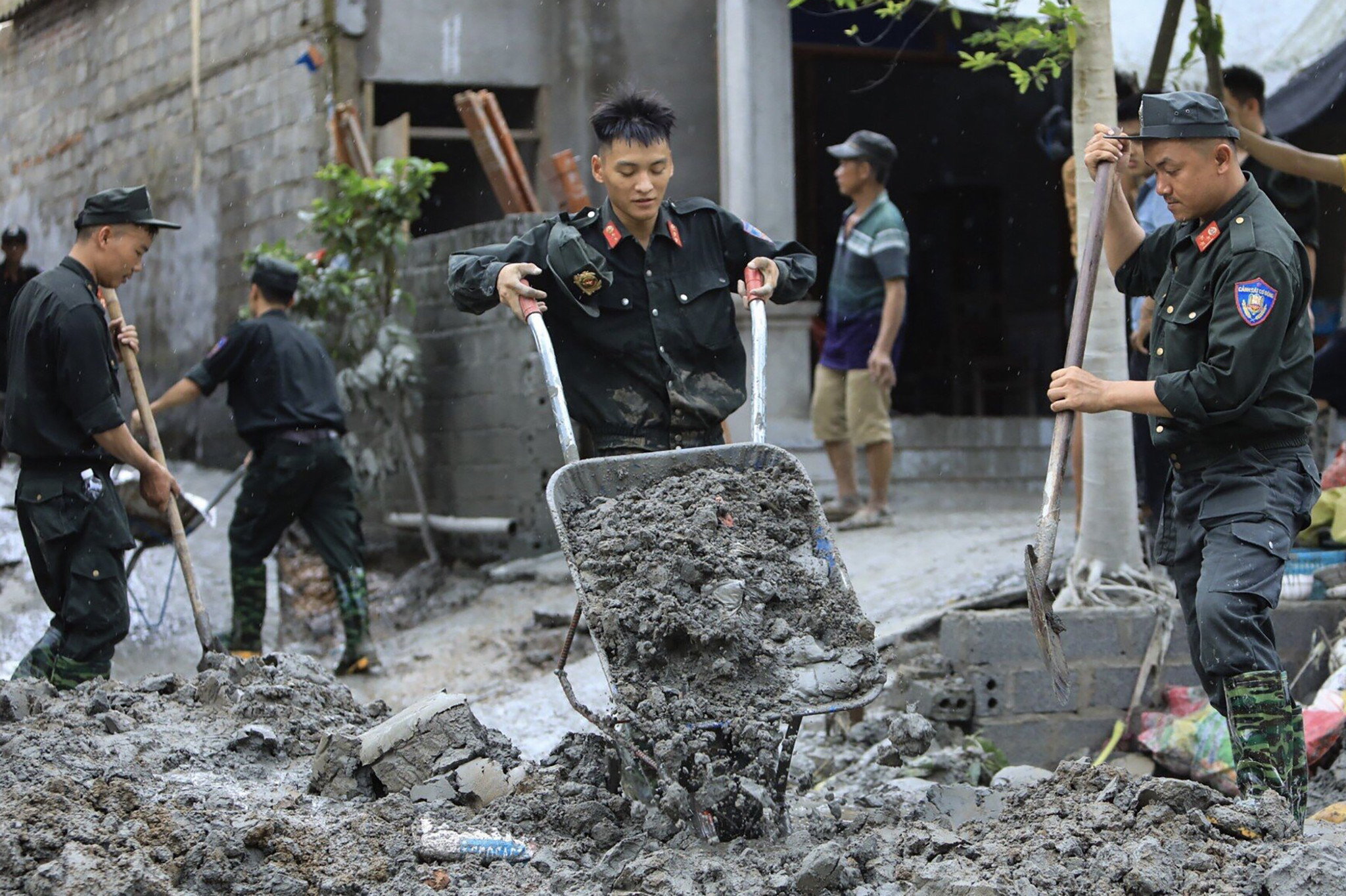 Có mặt tại hiện trường, gần 100 cán bộ, chiến sĩ của Trung đoàn Cảnh sát cơ động Tây Bắc đã ra quân với đầy đủ trang thiết bị để thực hiện cứu hộ, cứu nạn, khắc phục hậu quả giúp dân.