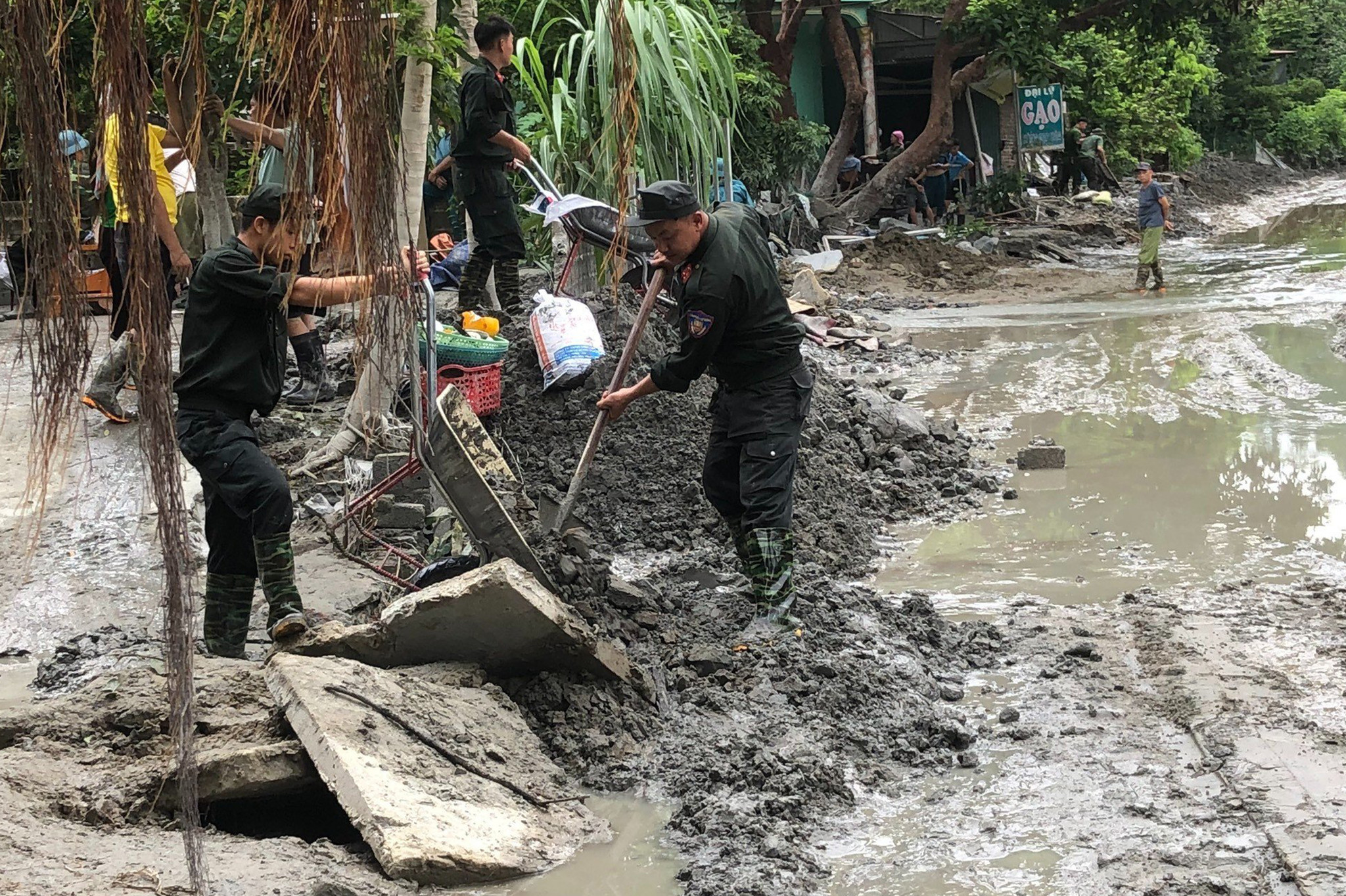 Nhận được tin, Thiếu tướng Lê Ngọc Châu- Tư lệnh CSCĐ đã điều động Tiểu đoàn CSCĐ số 4 đóng quân tại Lào Cai, ra quân xử lý ngăn chặn dòng chảy bùn thải và giúp bà con khắc phục hậu quả.