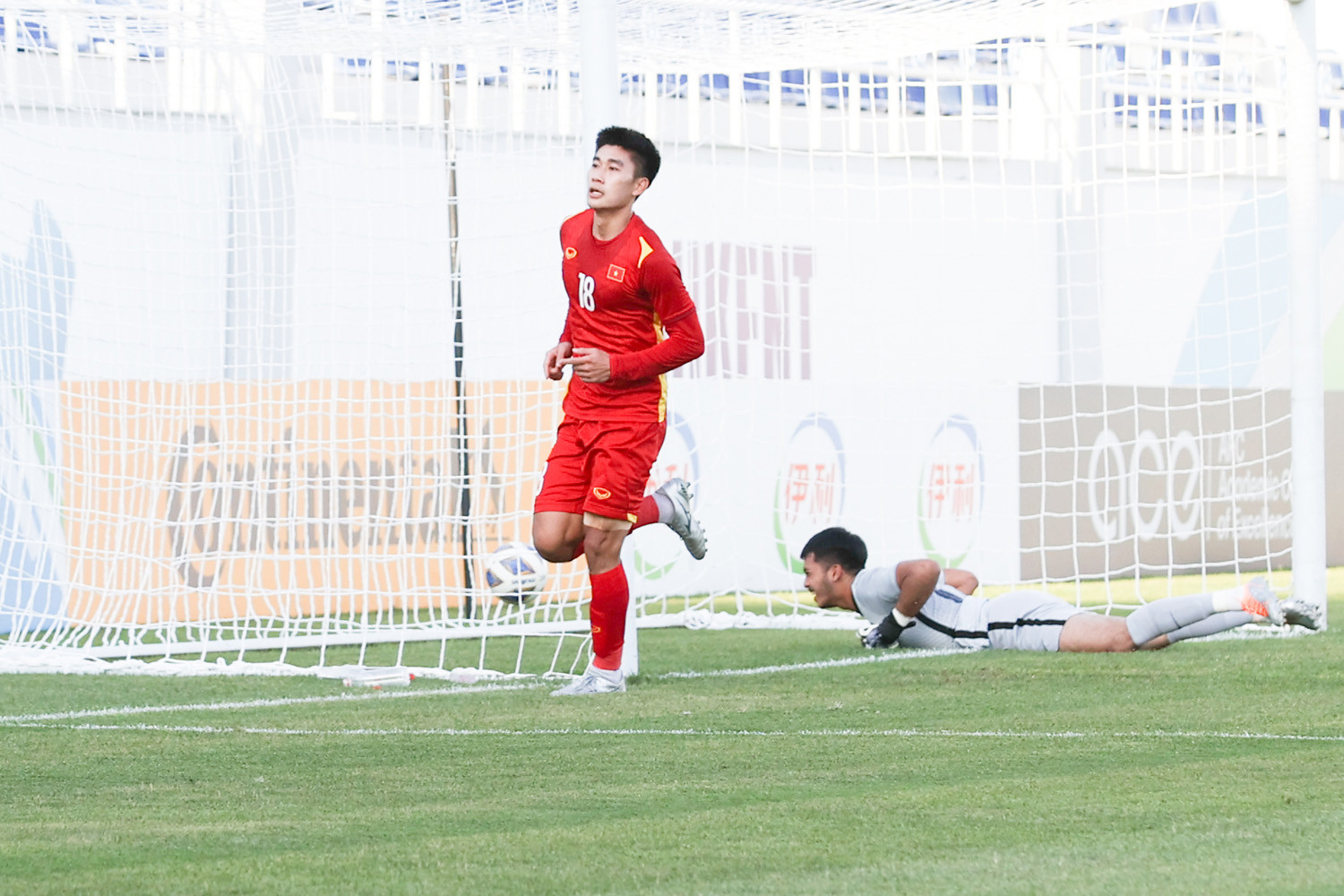 Nhâm Mạnh Dũng, Việt Anh ghi bàn giúp U23 Việt Nam hạ Malaysia 2-0, qua đó giành tấm vé vào tứ kết VCK U23 châu Á 2022.