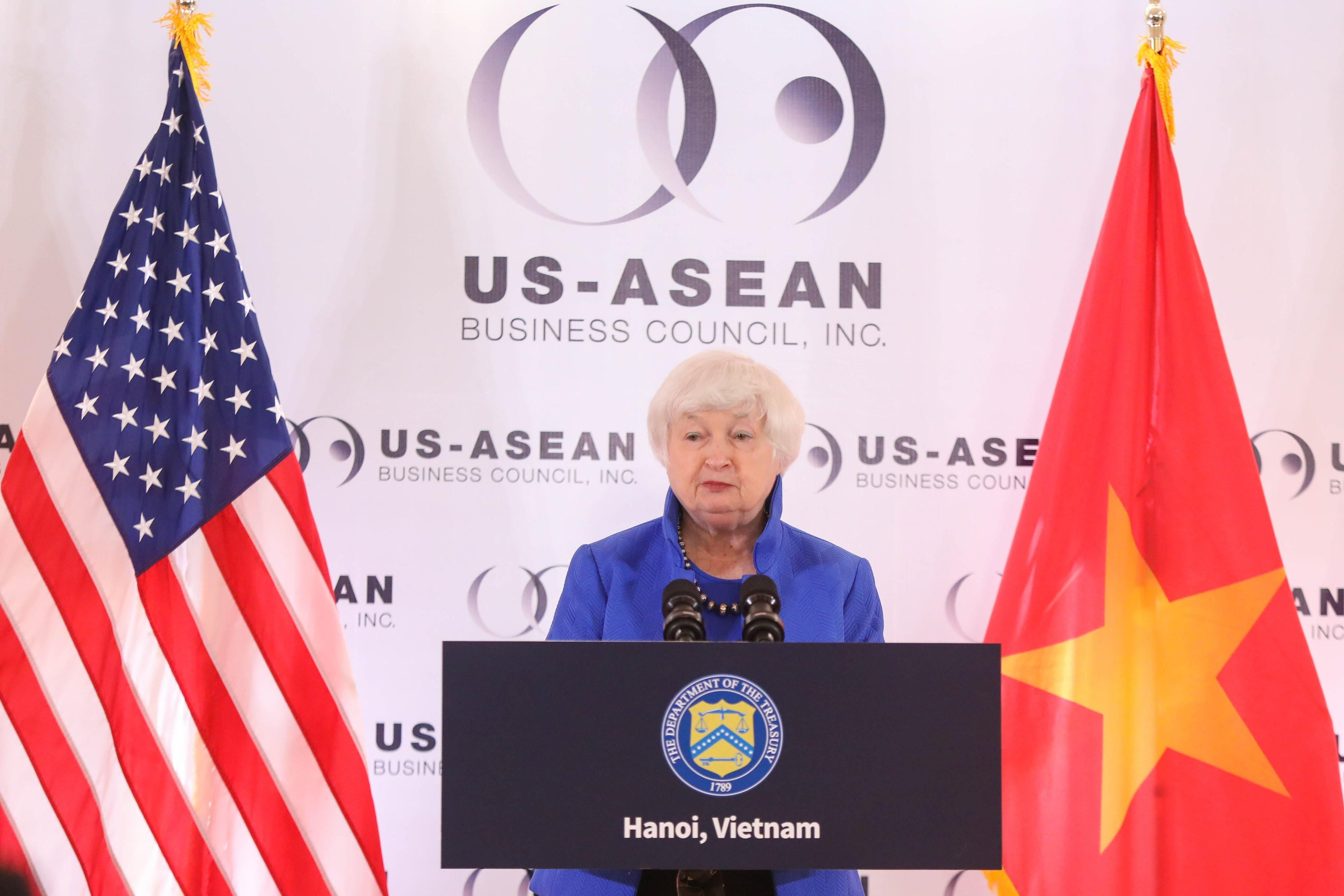 Trước đó vào sáng nay, phát biểu tại Hội đồng Kinh doanh Mỹ - ASEAN, Bộ trưởng Janet Yellen ca ngợi quá trình phát triển kinh tế của Việt Nam. Trong 28 năm kể từ khi bình thường hóa quan hệ, Việt Nam đã có sự chuyển mình đáng kể. Sự bùng nổ kinh tế này đã được thúc đẩy bởi tài năng và sự chăm chỉ của người dân Việt Nam, cùng với các cải cách thị trường cũng như thương mại và đầu tư toàn cầu.
