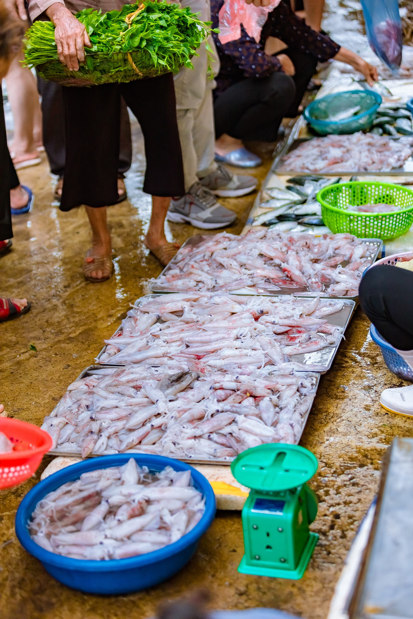 Vì là khu chợ giáp biển nên hàng ngày, bà con thường chở về đầy ắp các mặt hàng thủy hải sản đa dạng để buôn bán tại đây. Thủy, hải sản như tôm, cá, mực, bề bề, ốc,…, được đánh bắt trong ngày nên đảm bảo tươi rói, giá cả lại phải chăng nên rất được người địa phương và du khách ưa chuộng, mua về chế biến, thưởng thức.