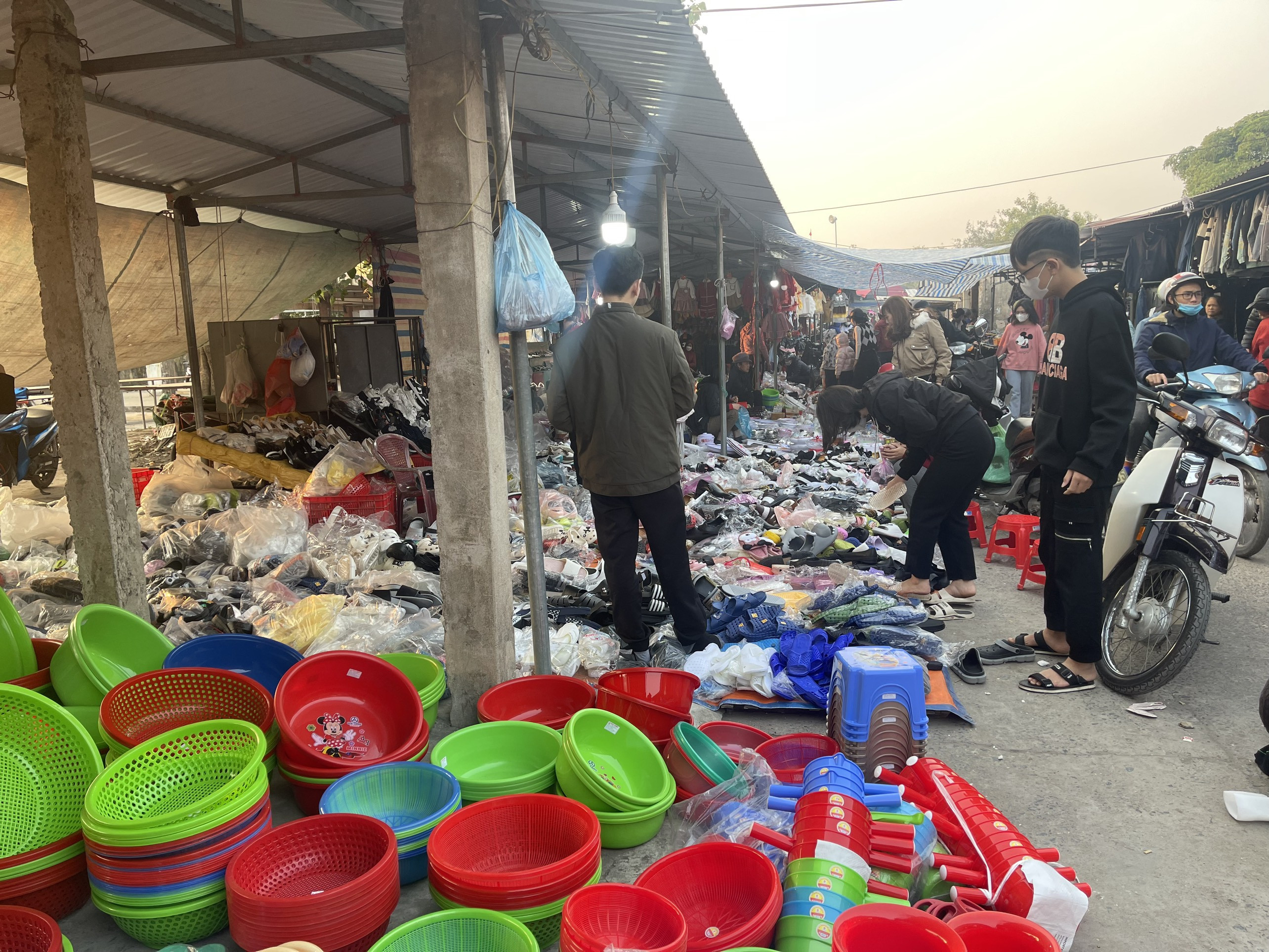 Các gian hàng, dãy chợ đều được phân chia, thiết kế quy củ, ngăn nắp, khoa học. Trong đó, khu vực các gian chợ cổ, xưa cũ thì bày bán các mặt hàng truyền thống, còn dãy nhà mái bằng bán quần áo, giày dép thời trang,… (Ảnh: Quốc Đạt).