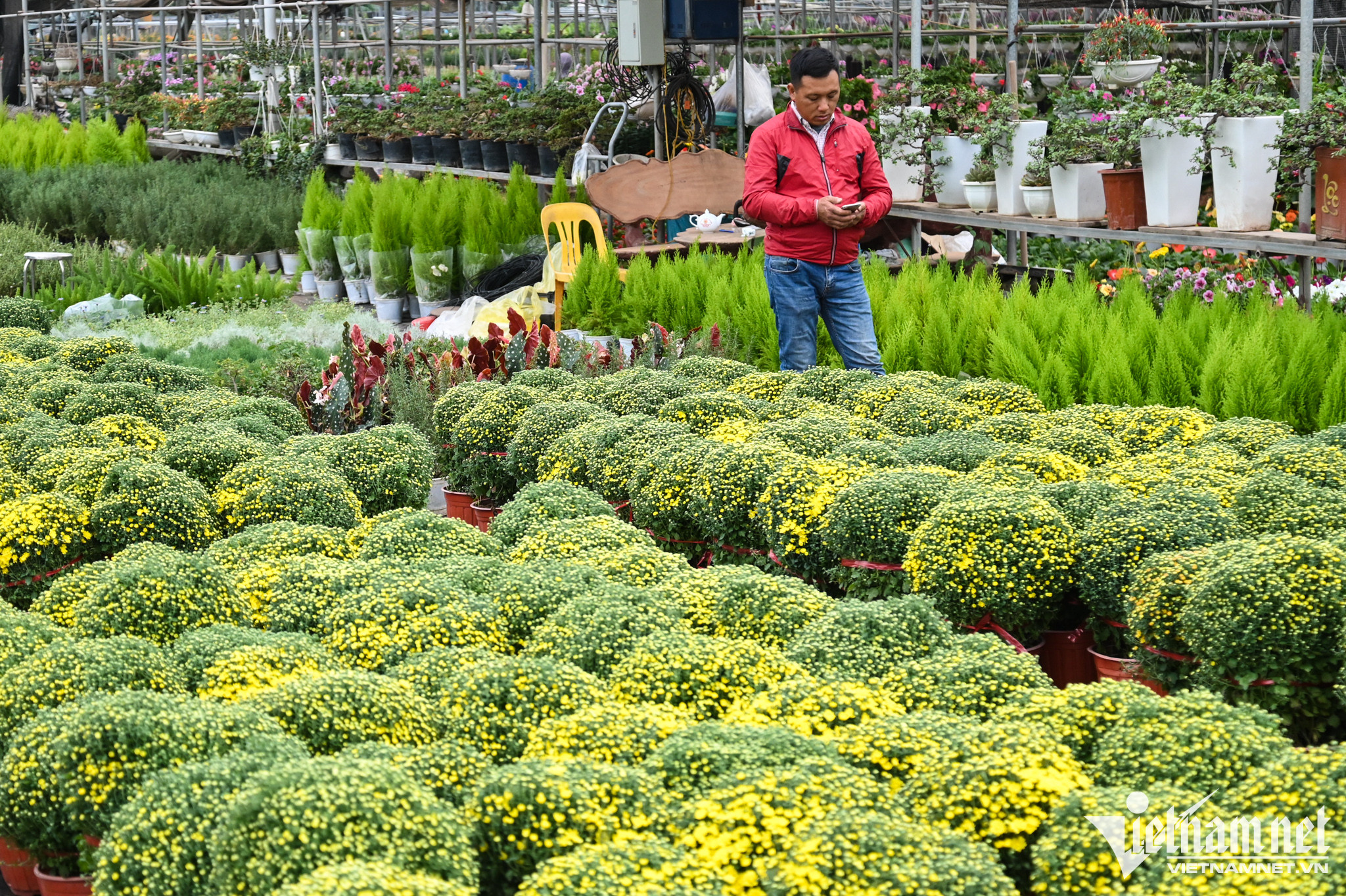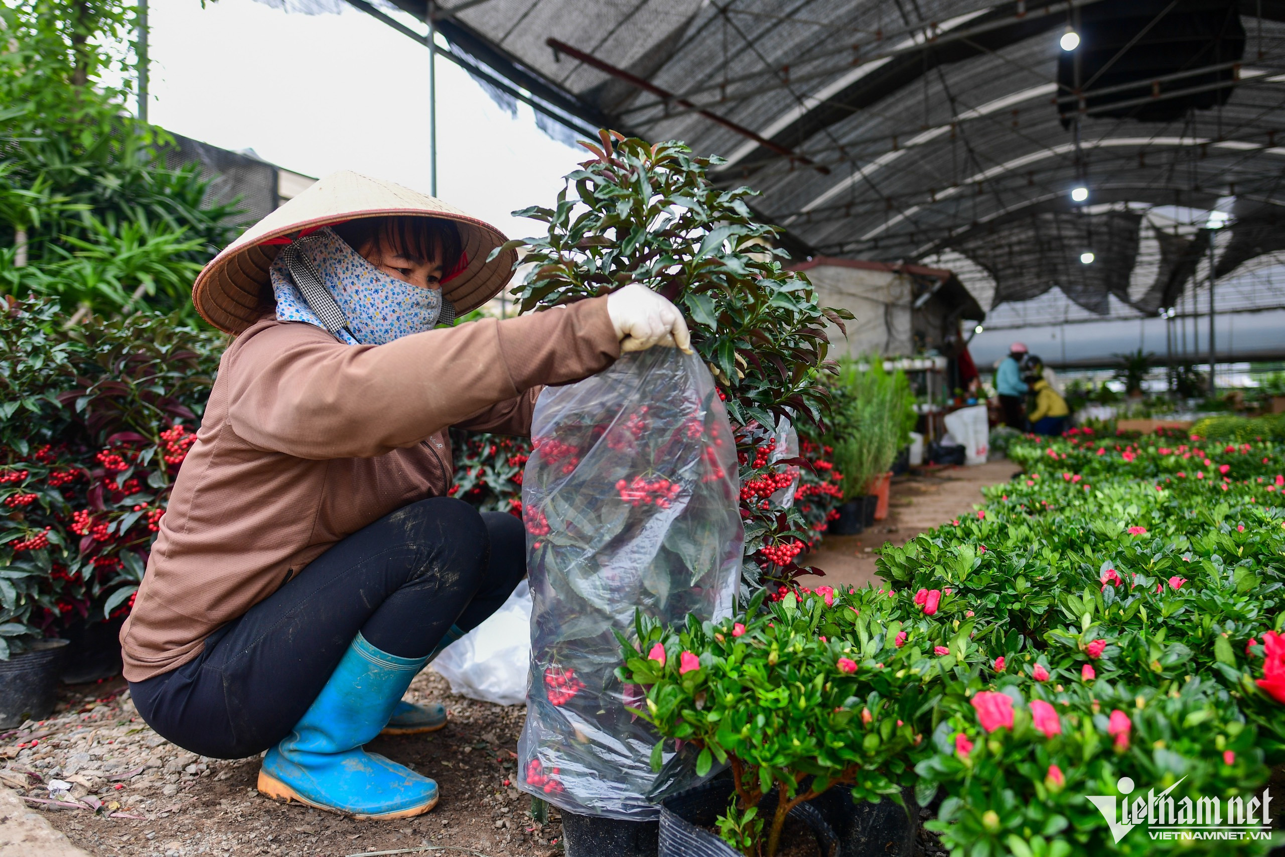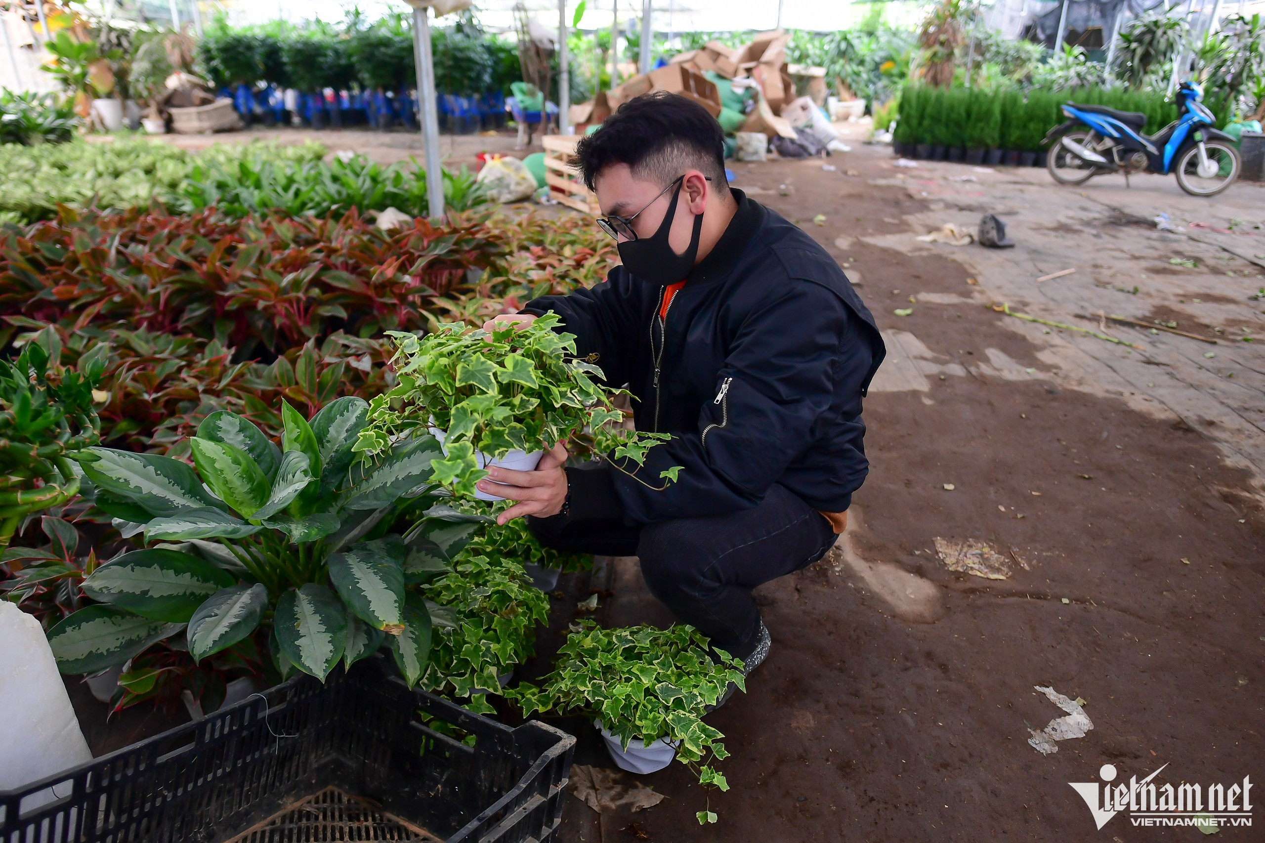 Dương (23 tuổi, Hưng Yên) phụ trách đóng gói và chở hoa cho khách. “Gần 1 tuần này đợt khách cũng trở bệnh đông hơn. Từ sáng đến giờ cửa hàng tôi cũng đã bán được 100 chậu, nhưng so với năm ngoái đợt này có vẻ vắng hơn, dù chỉ có 2 người làm nhưng vẫn đảm bảo số lượng công việc. Chủ yếu khách thường mua cẩm tú cầu, hoa hồng về để bày và trang trí Tết”, Dương cho biết.