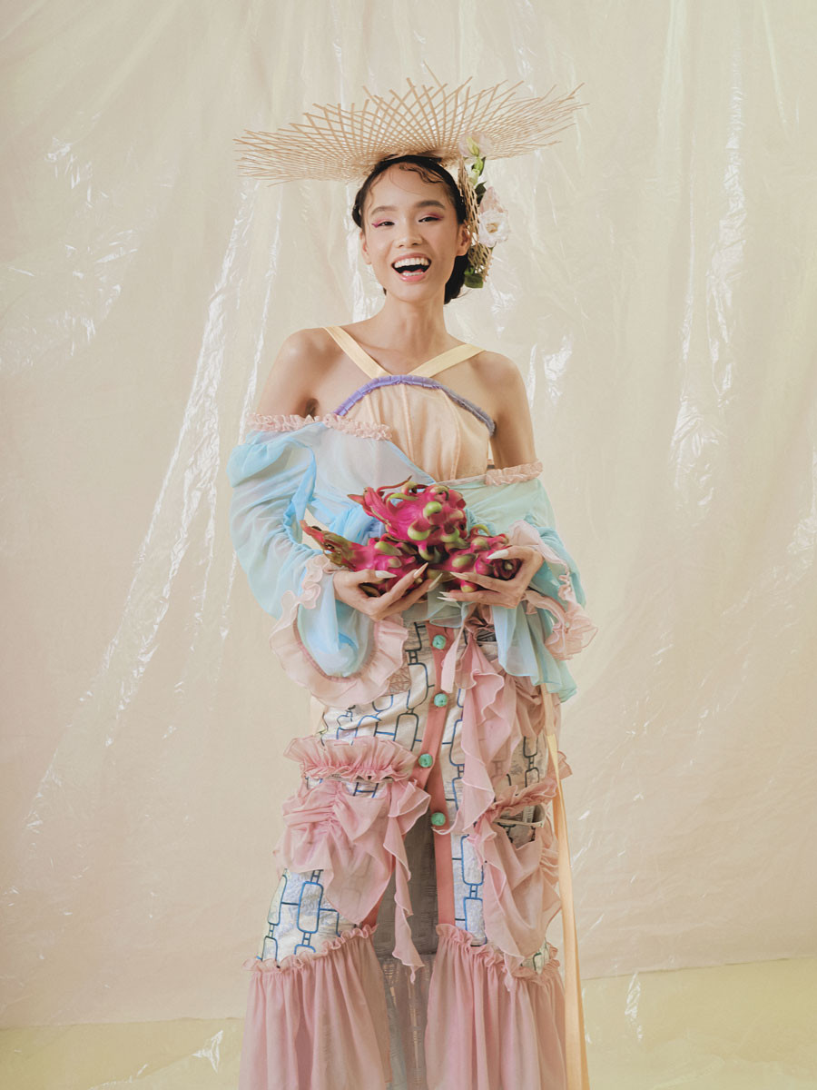 Bộ sưu tập "Bếp quê" của Nguyễn Thị Nguyệt Huế lấy ý tưởng từ gian bếp ở vùng Vũng Liêm (Vĩnh Long) - quê hương của cô.
