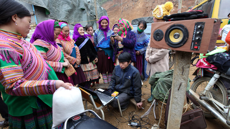 Cụ bà H' Mông sành điệu tải nhạc số nghe Tết