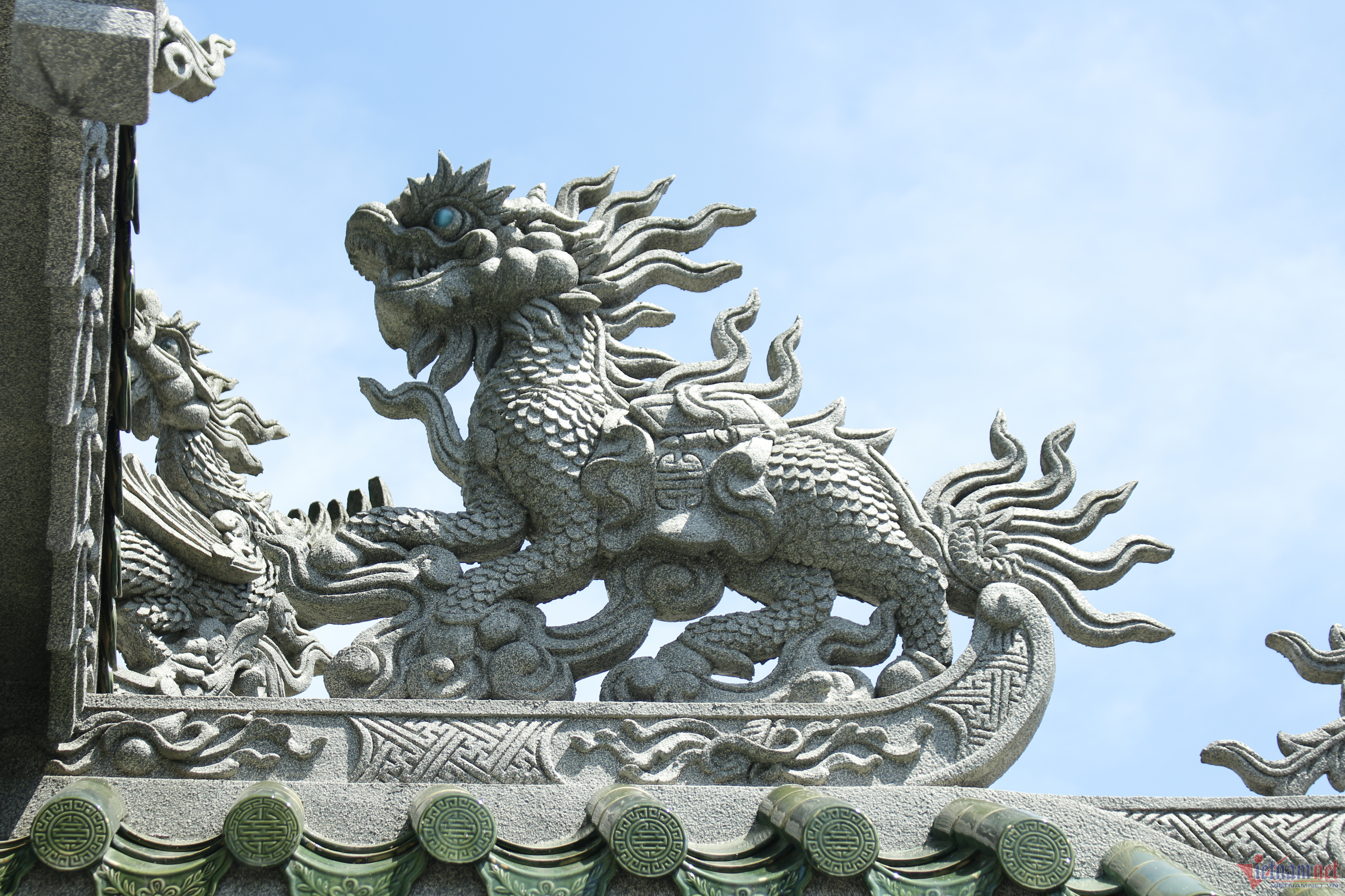 Các trụ biểu và vòm am được chạm khắc tứ linh long, lân, quy, phụng - những linh vật gắn với đời sống tâm linh và mang ý nghĩa tượng trưng cho sức mạnh, quyền lực, may mắn cho gia chủ.