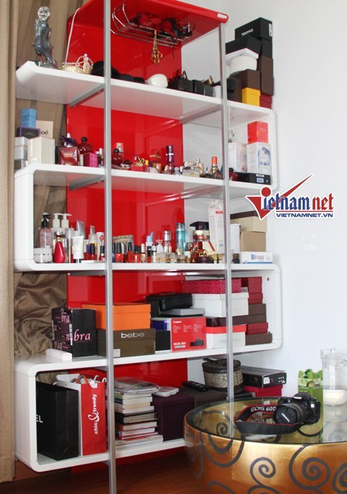 | Amy rất chịu khó chăm sóc da nên có hẳn một tủ được các mỹ phẩm chăm sóc cùng với những lọ nước lo xinh xắn. |