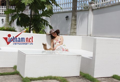| Ngoài vườn có những chiếc ghế và bàn để người đẹp có thể vừa phơi nắng vừa ngắm hoa. |