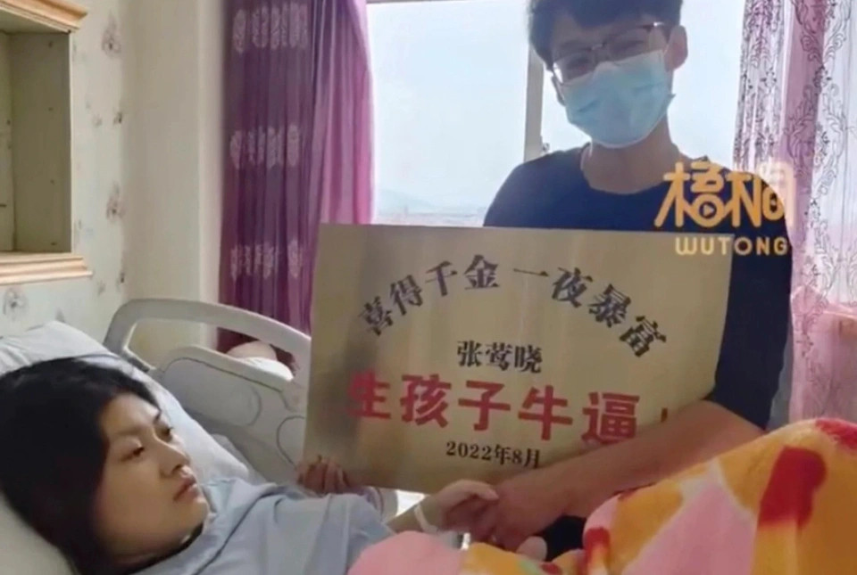 “Chúc mừng con gái yêu chào đời! Sinh con là điều tuyệt vời, Trương Anh Hiếu! Tháng 8/2022", lời nhắn được anh Lý ghi trên tấm biển. Tuy nhiên, ngày tháng viết trên tấm biển không đúng với ngày con gái anh Lý sinh khiến người dùng mạng có chút tò mò.