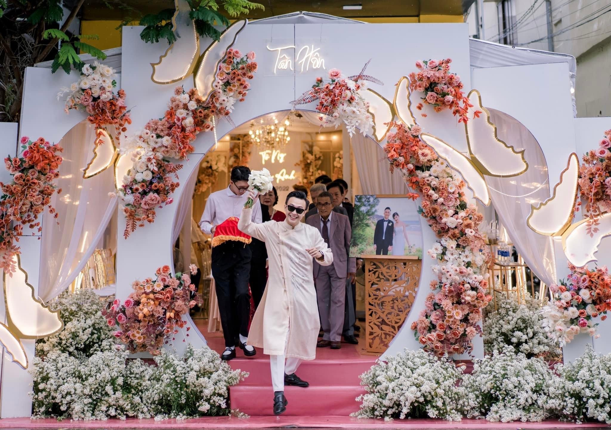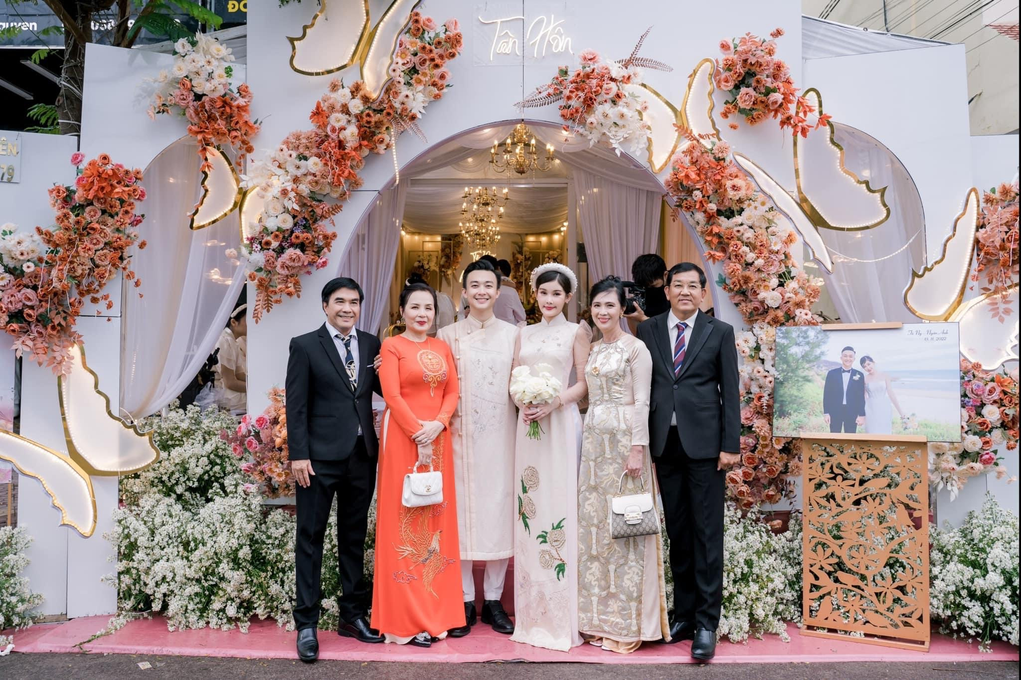 Lê Âu Ngân Anh và chồng là Phan Tô Ny chính thức tổ chức lễ tân hôn tại Quy Nhơn - quê nhà chú rể trước sự chứng kiến của gia đình hai bên và bạn bè thân thiết ngày 13/11.Ngân Anh và Phan Tô Ny ôm hôn, dành cho nhau những cử chỉ tình tứ. Cặp đôi đã đăng ký kết hôn gần nửa năm trước nhưng tháng 11/2022 mới chính thức tổ chức hôn lễ.Ngân Anh diện áo dài hồng truyền thống vừa thanh lịch và đằm thắm, còn chồng cô xuất hiện với ngoại hình bảnh bao, lịch lãm, khuôn mặt điển trai. Biểu cảm rạng rỡ, đầy hạnh phúc của chú rể Phan Tô Ny trong ngày trọng đại.Ngân Anh quen chồng sắp cưới trong một lớp học MC cách đây 2 năm. Khi đó, Tô Ny là thầy giáo còn Ngân Anh là học trò. Sau thời gian tìm hiểu, họ nảy sinh tình cảm và được gia đình hai bên ủng hộ.Lê Âu Ngân Anh lần đầu công khai hình ảnh chồng sắp cưới vào tháng 8. Cô tiết lộ sắp về chung một nhà với bạn trai sau hai năm hẹn hò.Buổi lễ được cử hành trong không khí vui vẻ và ấm cúng với sự hiện diện của gia đình.Sau lễ tân hôn, cặp đôi tổ chức tiệc mừng tiếp đãi quan khách. Trên trang cá nhân, Ngân Anh và chồng xác nhận với thời gian tổ chức đám cưới vào 18/11/2022.Chú rể Phan Tô Ny xúc động rơi nước mắt ngay trong hôn lễ được tổ chức tại Quy Nhơn.