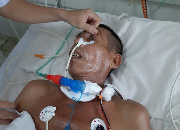 Đêm ngày 10/4, chú Tấn nhập viện Bệnh viện Bệnh Nhiệt đới TP.HCM trong tình trạng bị cứng hàm, cơ toàn thân bị gồng cứng, không ăn uống được. Sang ngày hôm sau, chú gồng người dữ dội, buộc phải mở khí quản, gắn máy thở. Bác sĩ chẩn đoán chú bị nhiễm trùng uốn ván.