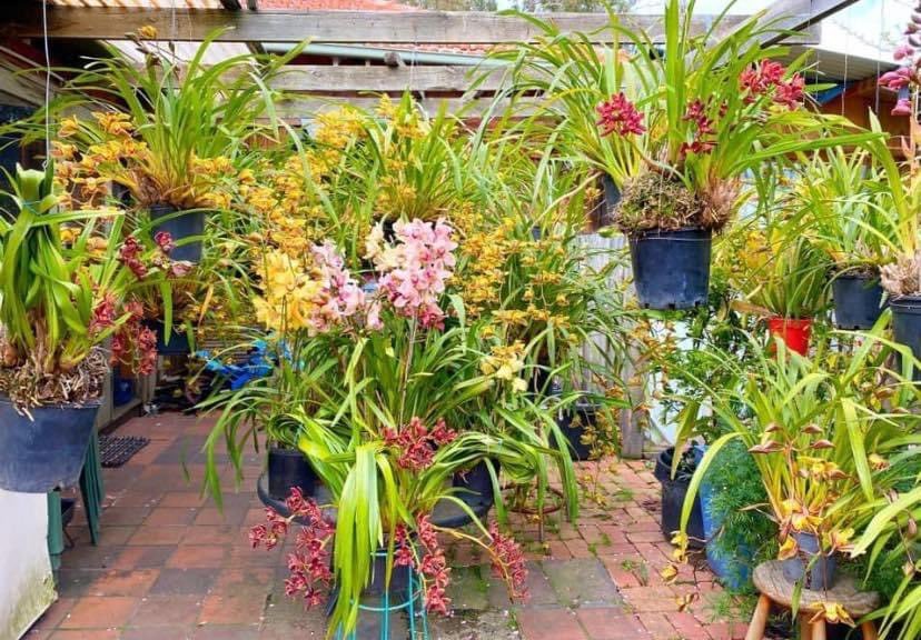 Ngoài vườn nhật quỳnh cho hoa rực rỡ, gia đình chị Nguyệt còn khiến người ghé thăm phải trầm trồ bởi những sắc hoa lan.