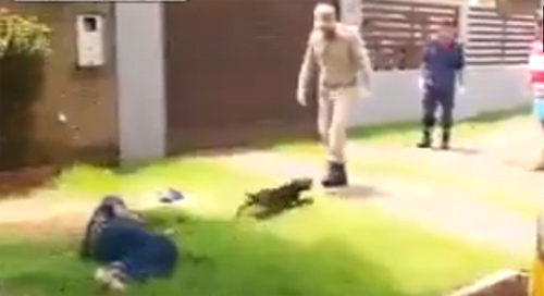 Thấy ông chủ say rượu nằm ngủ vật trên bãi cỏ, chú chó nằm bên cạnh và sẵn sàng tấn công bất cứ người lạ nào tiến lại gần. Cảnh tượng được ghi lại tại Brazil.