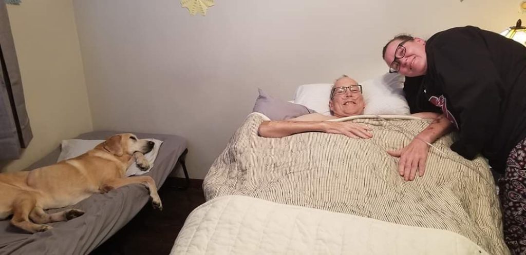 Chú chó trung thành không chịu rời ông chủ trong những ngày cuối cùng, vì thế gia đình phải đặt một chiếc giường dành riêng cho Gunner ở trong phòng của ông Hove. “Nó từ chối rời xa bố tôi. Nó cũng theo ông tới tất cả cuộc hẹn với bác sĩ, chạy theo ông mỗi khi ông làm việc vặt. Bất cứ nơi nào bố tôi đến, Gunner cũng đều đi theo và đợi ở ngoài xe tải” – chị Heather chia sẻ.