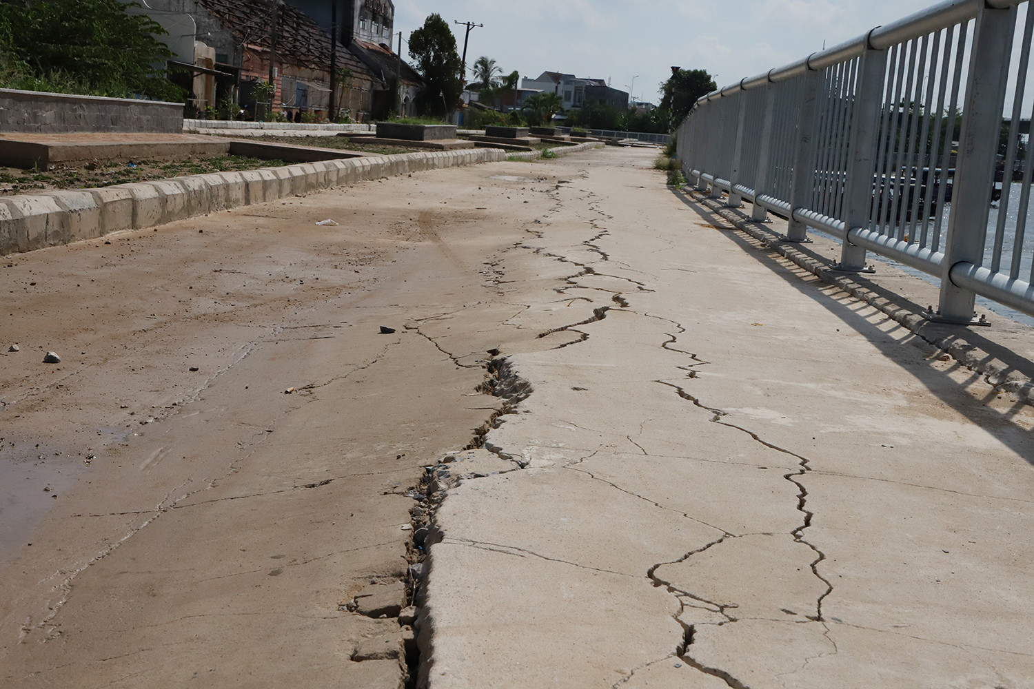 Theo đó, dự án kè bờ sông Cần Thơ có tổng chiều dài toàn tuyến gần 5,2km; gồm 4 gói thầu xây lắp 1, 2, 3 và 4. Hiện tượng nứt dọc cục bộ đường bê tông có chiều dài khoảng 200m thuộc gói thầu xây lắp số 1.