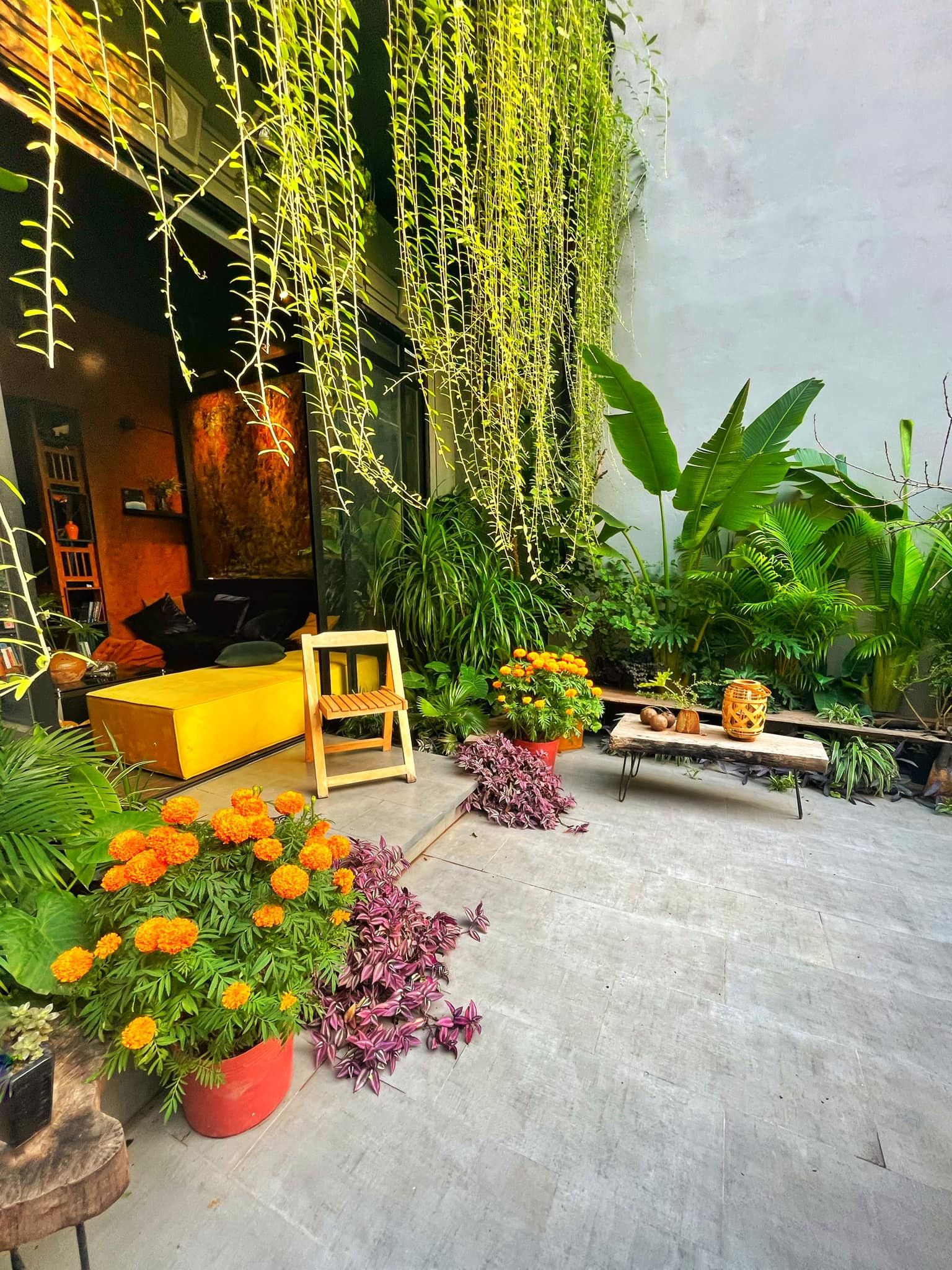 Do ngôi nhà lùi vào gần 100m2 so với cổng nên sau khi cơi nới khu vườn tầng 2, sân và khu vực tầng 1 vẫn có đủ ánh sáng, đảm bảo tính thông thoáng.