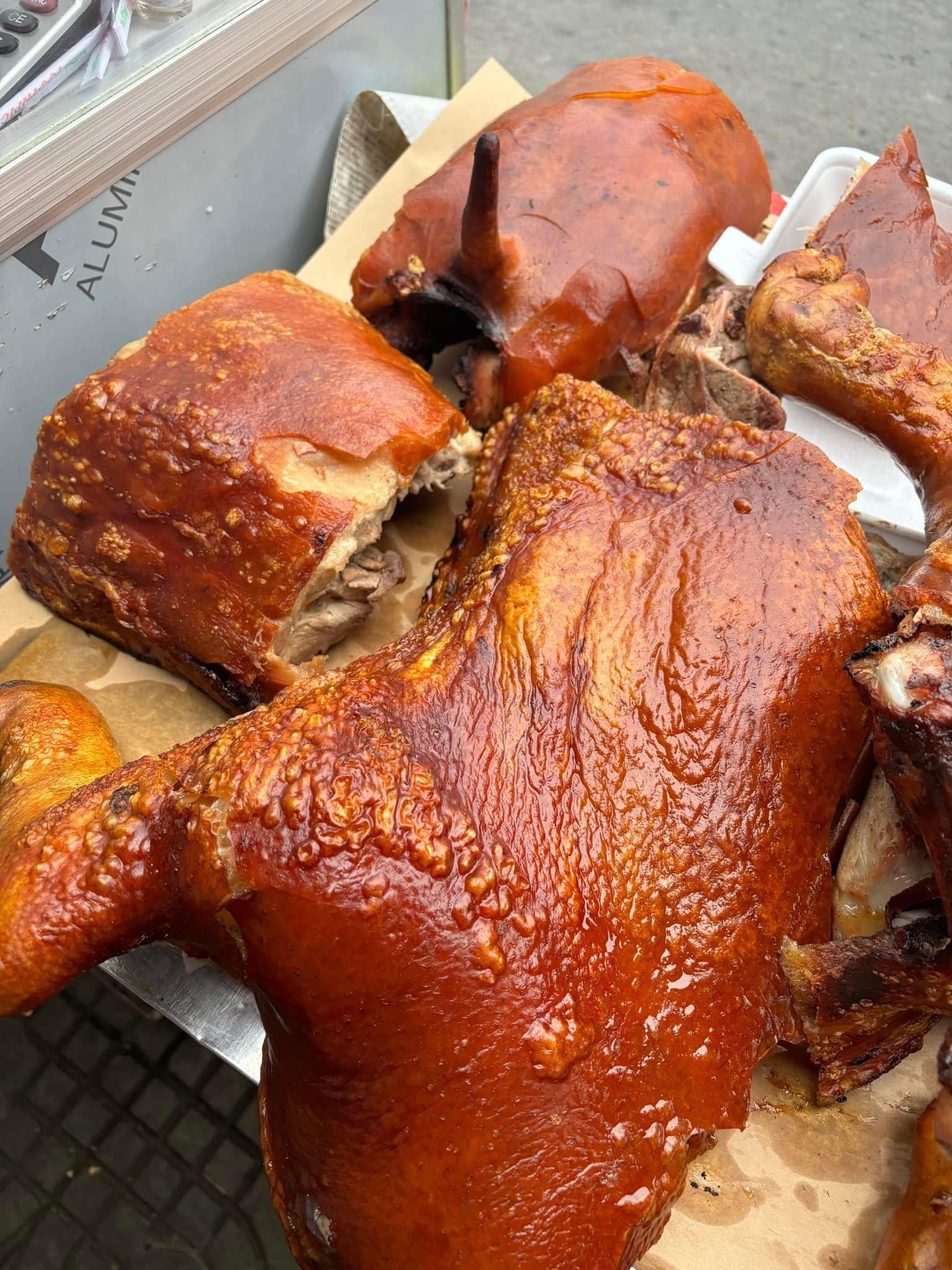 Chị Phan Thoa – một thực khách quen của quán nhận xét, lợn quay ở đây có phần bì giòn rụm, màu nâu hấp dẫn, để vài tiếng vẫn giòn ngon.