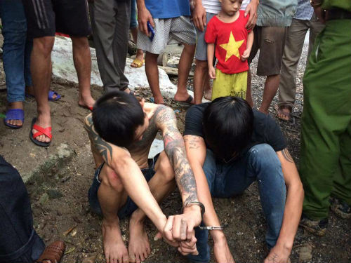 | Hai nghi phạm bị người dân và lực lượng công an bắt giữ |