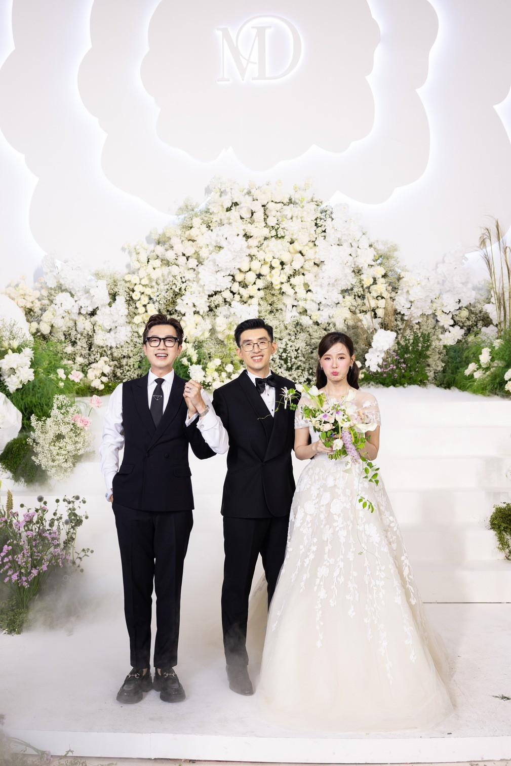 Diễn viên Midu và chồng doanh Minh Đạt xuất hiện rạng rỡ, hạnh phúc trong không gian lễ cưới lãng mạn, xa hoa tại TPHCM.