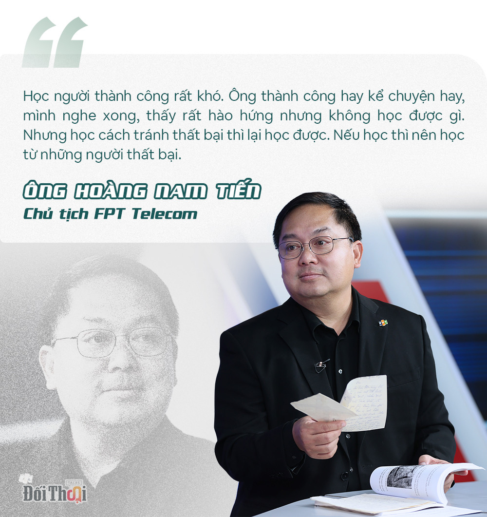 Thực ra mọi người cũng thường chỉ để ý đến thành công. Nhưng tôi nhớ từ ngày vào FPT tôi làm khoảng 10 việc thì chỉ có khoảng 5 việc thành công, còn 5 việc thất bại là mình lờ đi, mình không nói. Nhưng trong câu chuyện này tôi nói rất thành thật. Nếu học thì nên học từ những người thất bại.