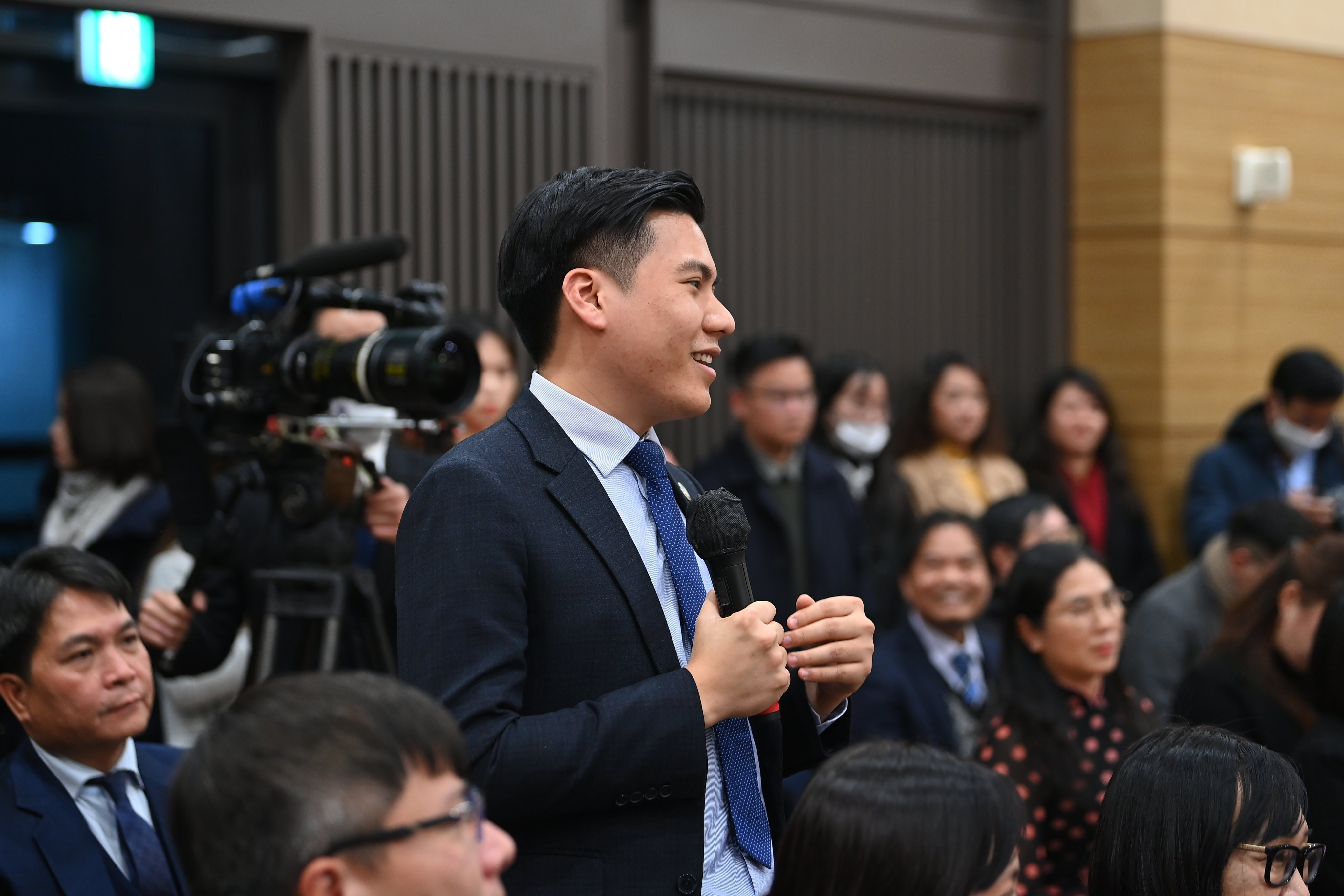 Ngay từ sớm, cộng đồng người Việt tại Hàn Quốc đã háo hức chờ đợi được gặp gỡ vị lãnh đạo cao nhất của Nhà nước Việt Nam. Khi Chủ tịch nước vừa bước vào, cả khán phòng đứng dậy vỗ tay. Chủ tịch nước Nguyễn Xuân Phúc lần lượt chào và bắt tay từng người, dành cho họ những lời hỏi thăm chân tình.