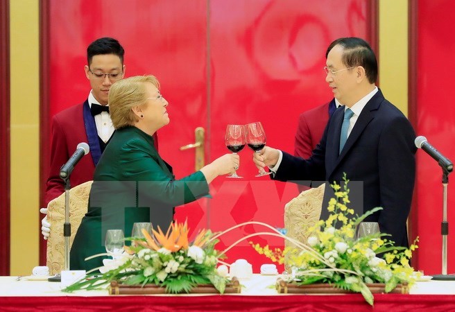 Trưa 9/11, tại Trung tâm Hội nghị quốc tế, Hà Nội, Chủ tịch nước Trần Đại Quang đã chủ trì tiệc Quốc yến trọng thể chào mừng Tổng thống Michelle Bachelet và đoàn đại biểu cấp cao nước Cộng hòa Chile thăm cấp Nhà nước tới Việt Nam.